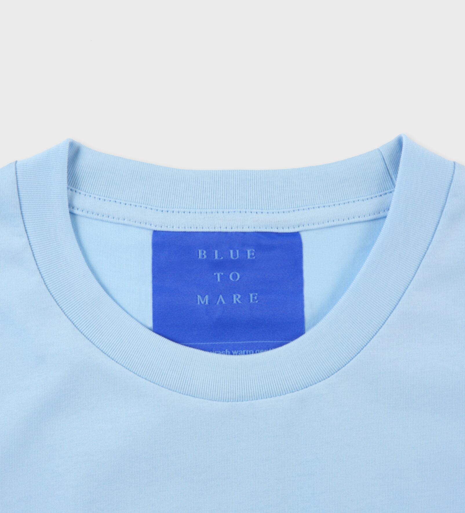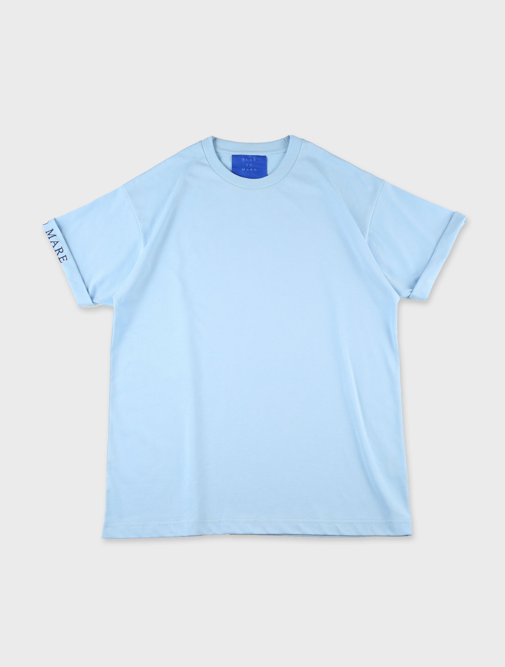 洗礼されたライトブルーのステッチTシャツ。